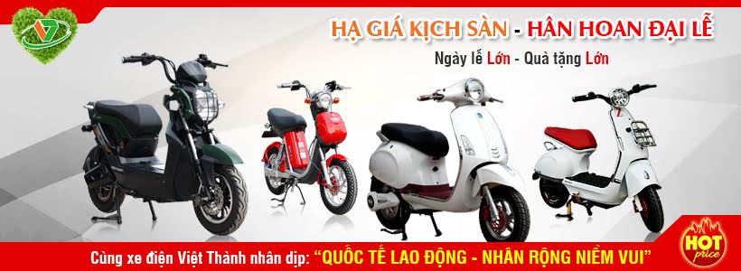 Trong thời gian qua cảm ơn Quý khách đã tin tưởng và ủng hộ sản phẩm của Xe điện Việt Thanh. Những tình cảm Quý khách hàng dành cho chúng tôi rất lớn và chúng tôi luôn trân trọng điều đó. Chào mừng ngày Giải phóng Miền Nam 30/04 và Quốc tế Lao động 01/05, Xe điện Việt Thanh xin gửi đến quý khách hàng chương trình “Hạ giá kịch sàn – Hân hoan đại lễ” dành cho khách hàng đến mua xe điện tại các showroom của cửa hàng, đồng thời còn nhận được nhiều phần quà hấp dẫn như: mũ bảo hiểm, giỏ mây, biển số, móc khóa. Chương trình áp dụng từ ngày nay đến hết ngày 02/05. Theo đó, khách hàng sẽ được giảm giá đồng loạt cho các sản phẩm sau: