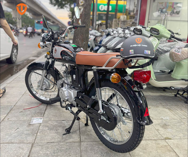 Bên trong thiết kế giản dị ấy là khối động cơ xăng 4 kỳ, 1 xi-lanh, dung tích 110cc – đủ để xe có khả năng tăng tốc mượt mà, chạy ổn định cả trong đô thị và trên các tuyến đường liên tỉnh. Công suất đạt 5.2 kW tại 8000 vòng/phút, mô-men xoắn cực đại 7.6 Nm tại 6000 vòng/phút, cho phép xe bứt tốc nhẹ nhàng mà không cần “gồng” máy. Đặc biệt, mức tiêu hao nhiên liệu chỉ khoảng 2 lít/100 km – một con số lý tưởng đối với những người di chuyển thường xuyên. Bình xăng dung tích 8 lít cũng cho phép xe đi đường dài mà không cần lo lắng về việc tiếp nhiên liệu liên tục.